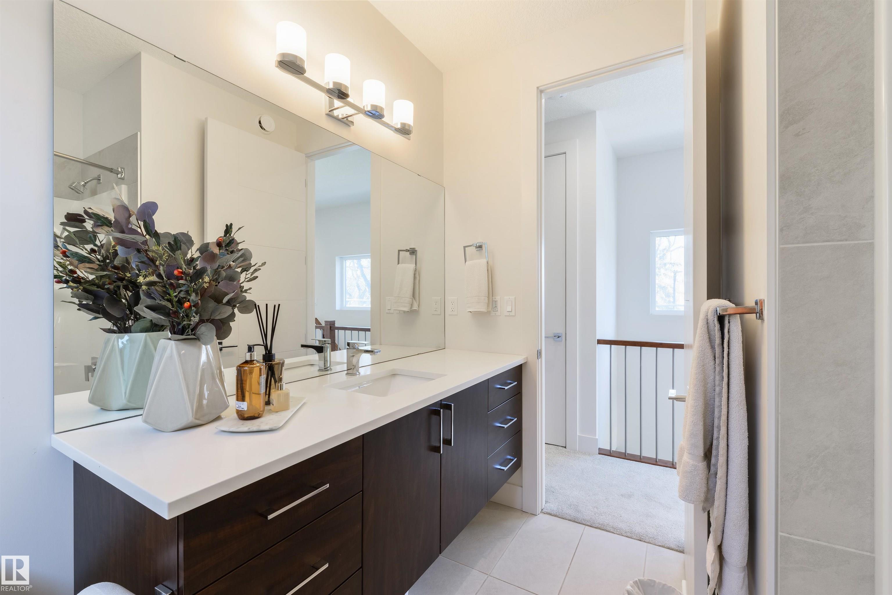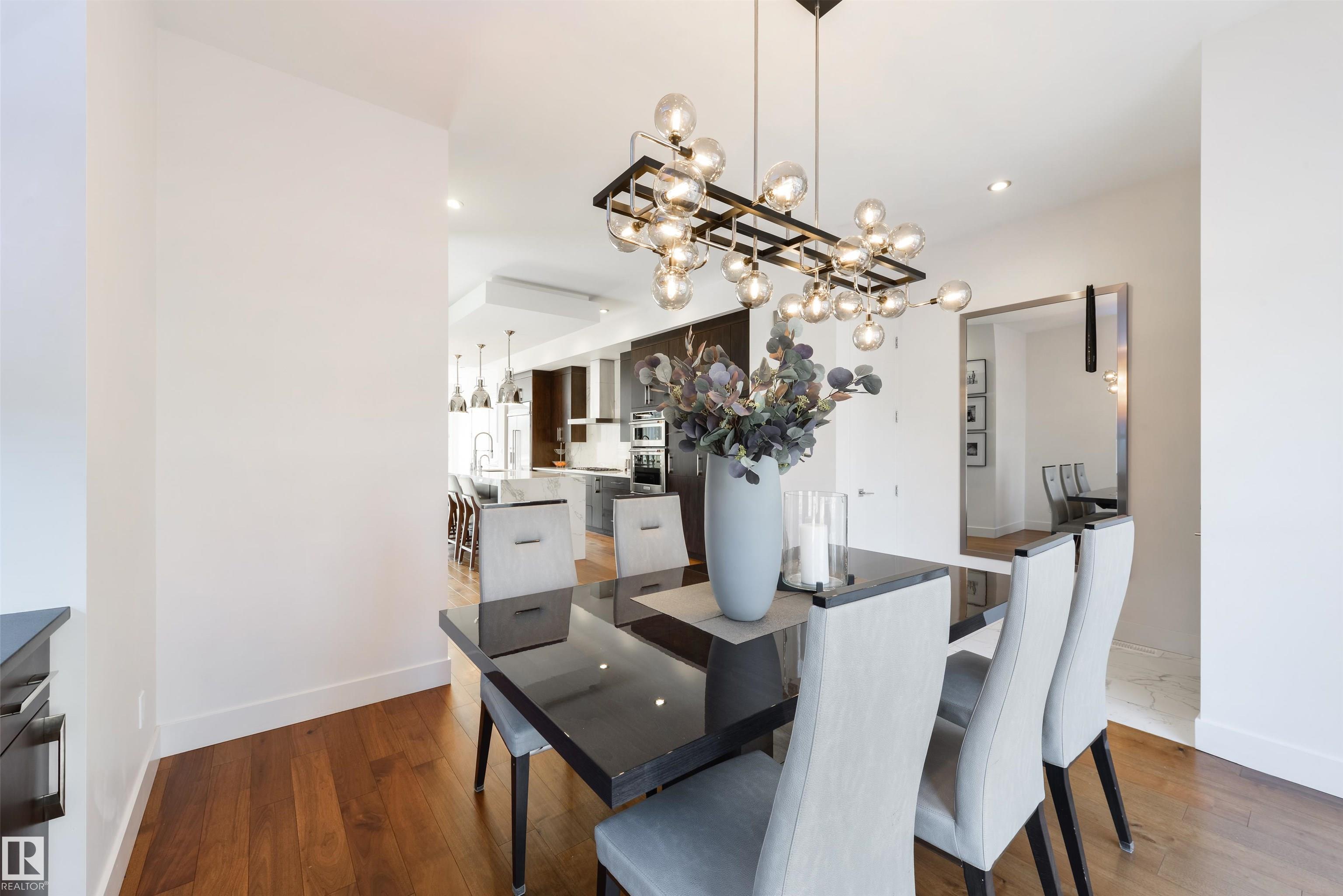 Stunning modern infill on a prime corner lot, just steps from the shops, restaurants, and lifestyle of 124 Street. This thoughtfully designed home features a bright, open-concept main floor with 10’ ceilings, 8’ doors, engineered hardwood, and large triple-pane windows throughout. The designer kitchen offers a large island, sleek cabinetry, and seamless flow into the dining and living areas, with a custom rear patio sliding door leading to the oversized deck—perfect for entertaining. Upstairs showcases 9’ c...