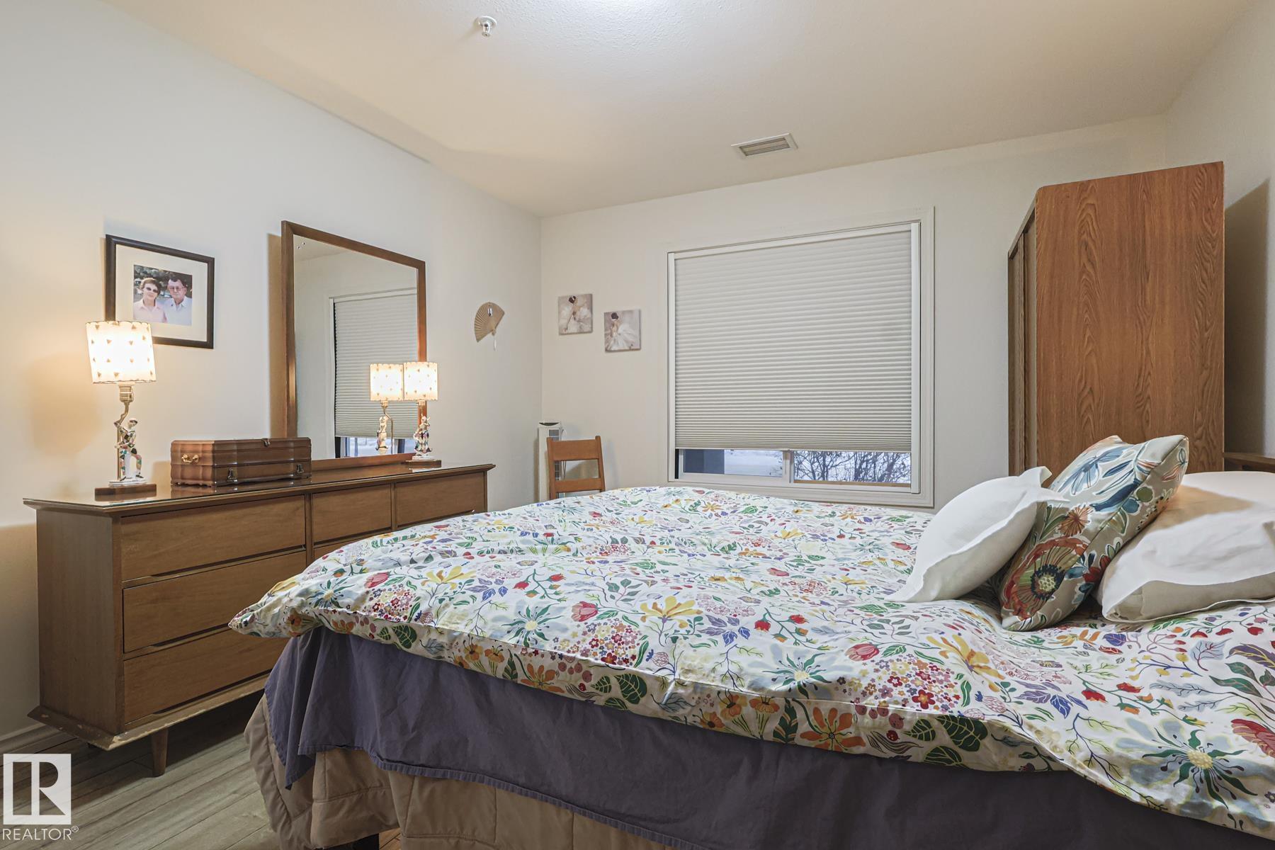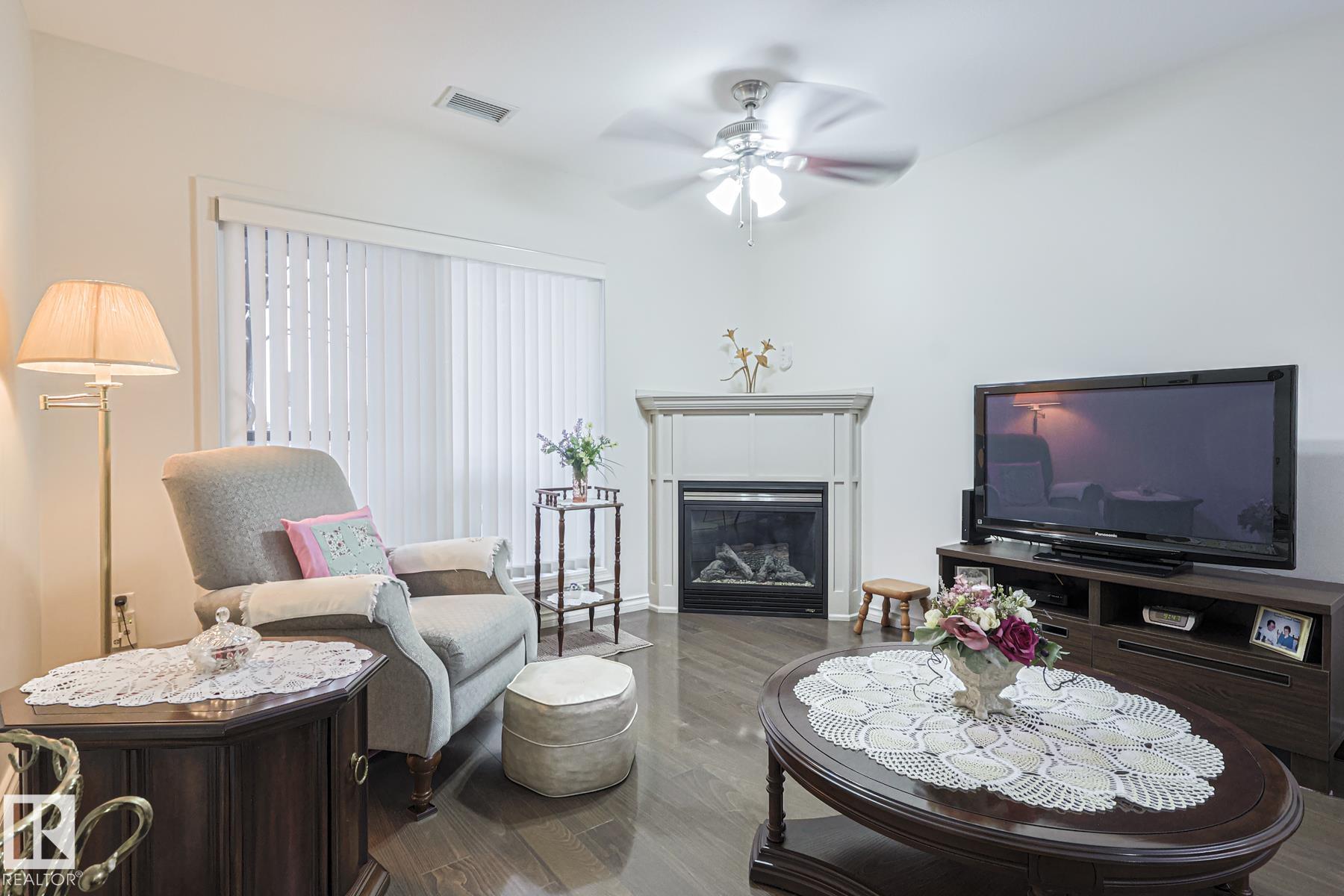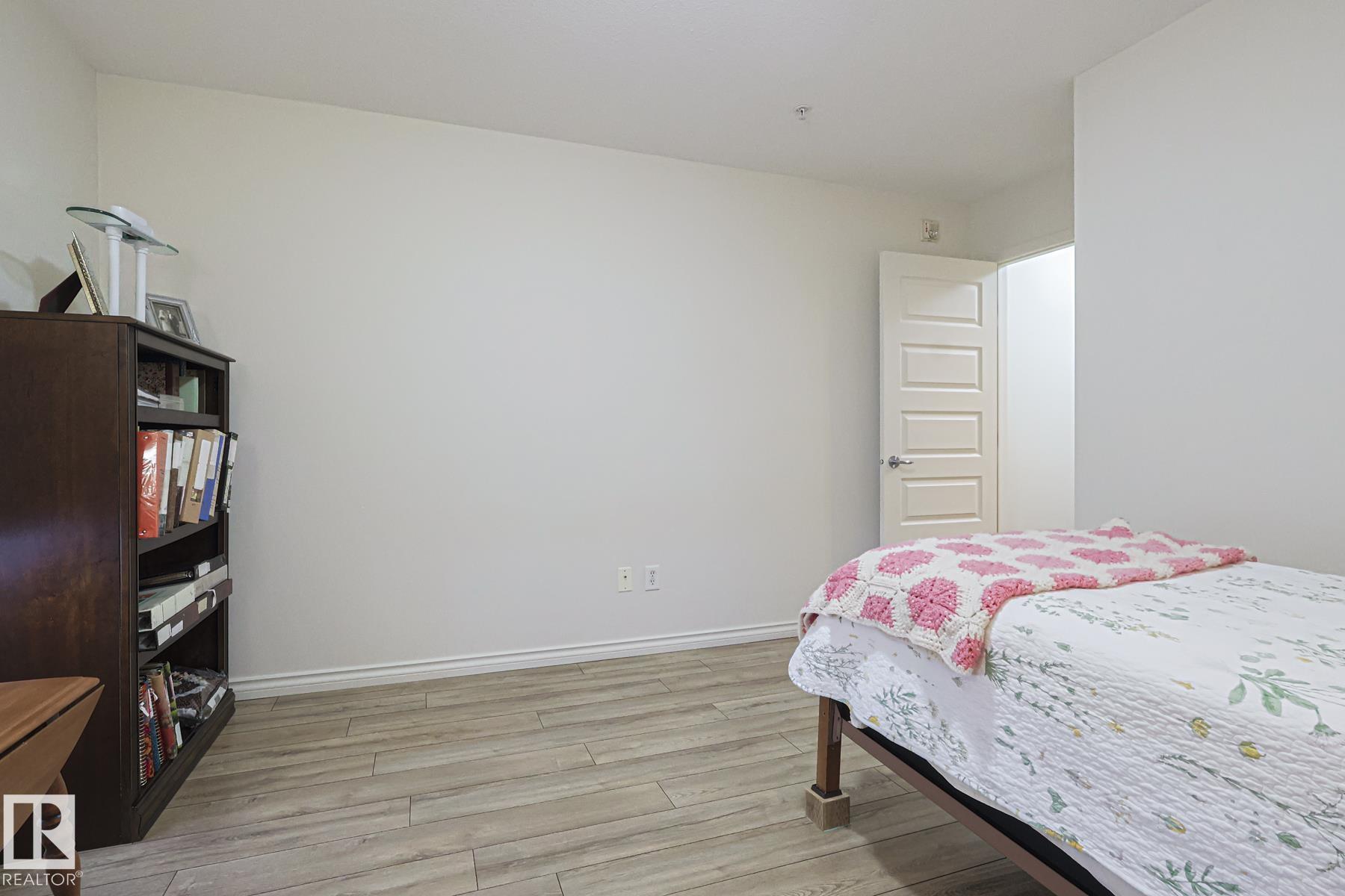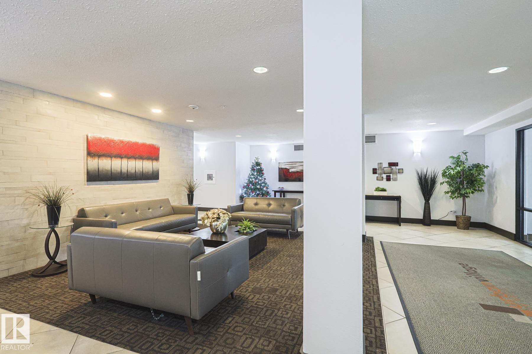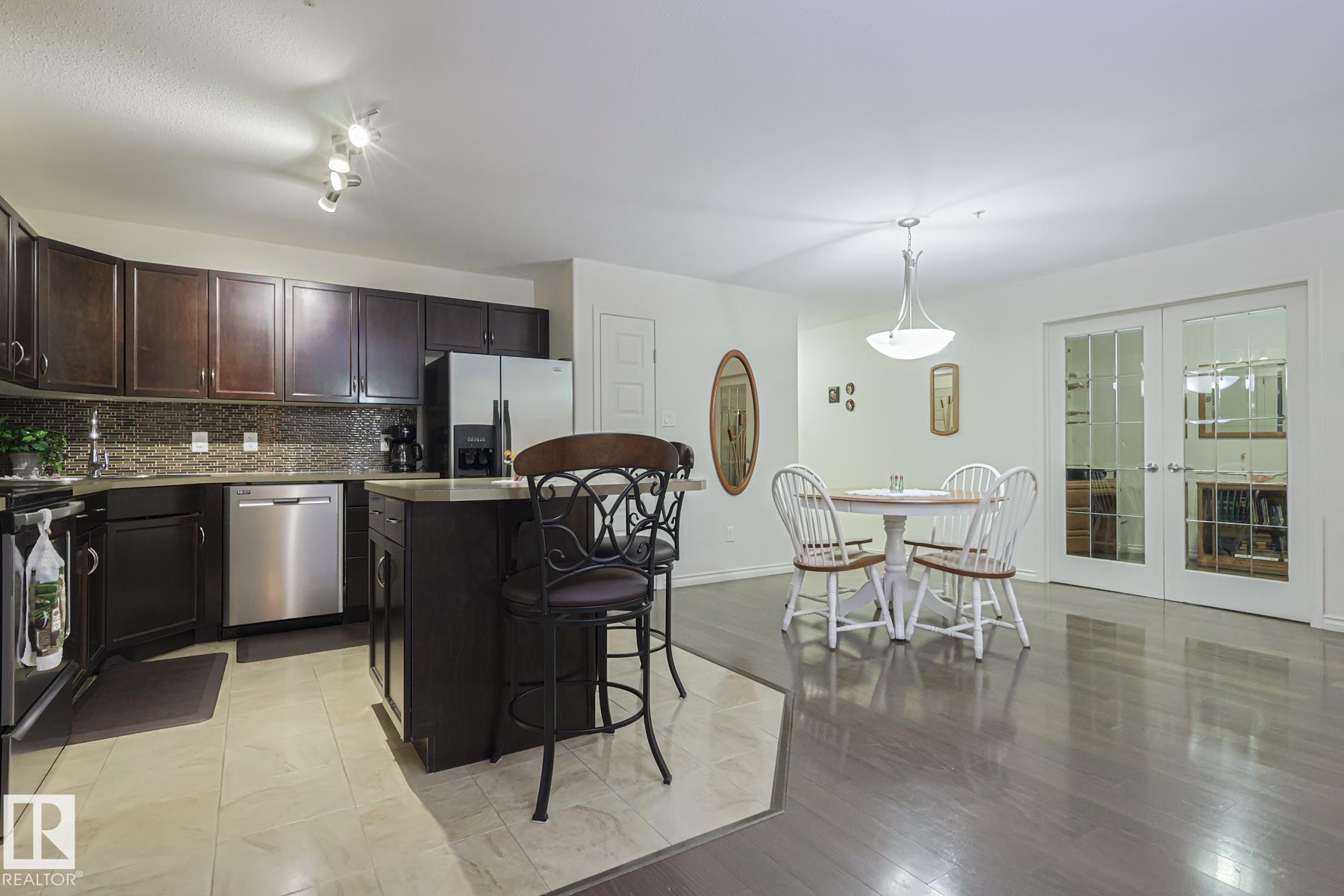 Upscale condo living at Urban Village on Whyte! One of the larger units at 1269 sq ft featuring 2-bedrooms plus a den, 2 full baths and 2 titled parking spots (one underground with storage cage and one above ground). This main-floor unit offers open-concept living w/ stylish kitchen, stainless steel appliances, and a large eating bar + dining area. Enjoy a bright living room with a cozy gas fireplace, vinyl plank & tile flooring throughout, in-suite laundry, central A/C, & generous storage. The primary suit...