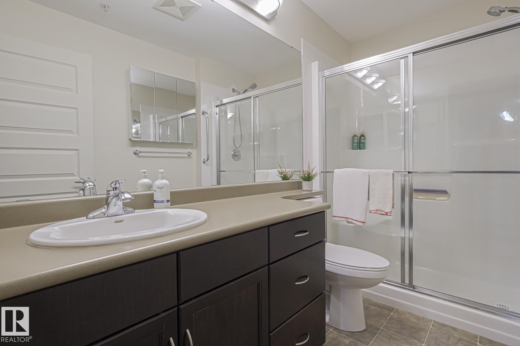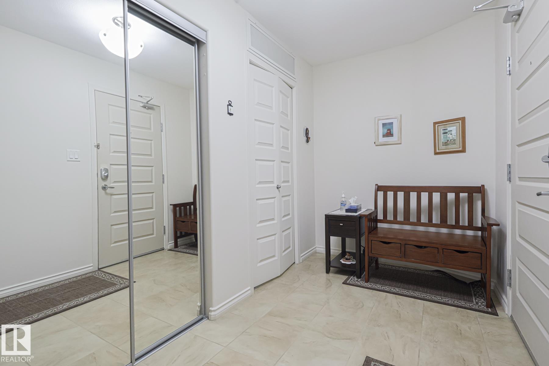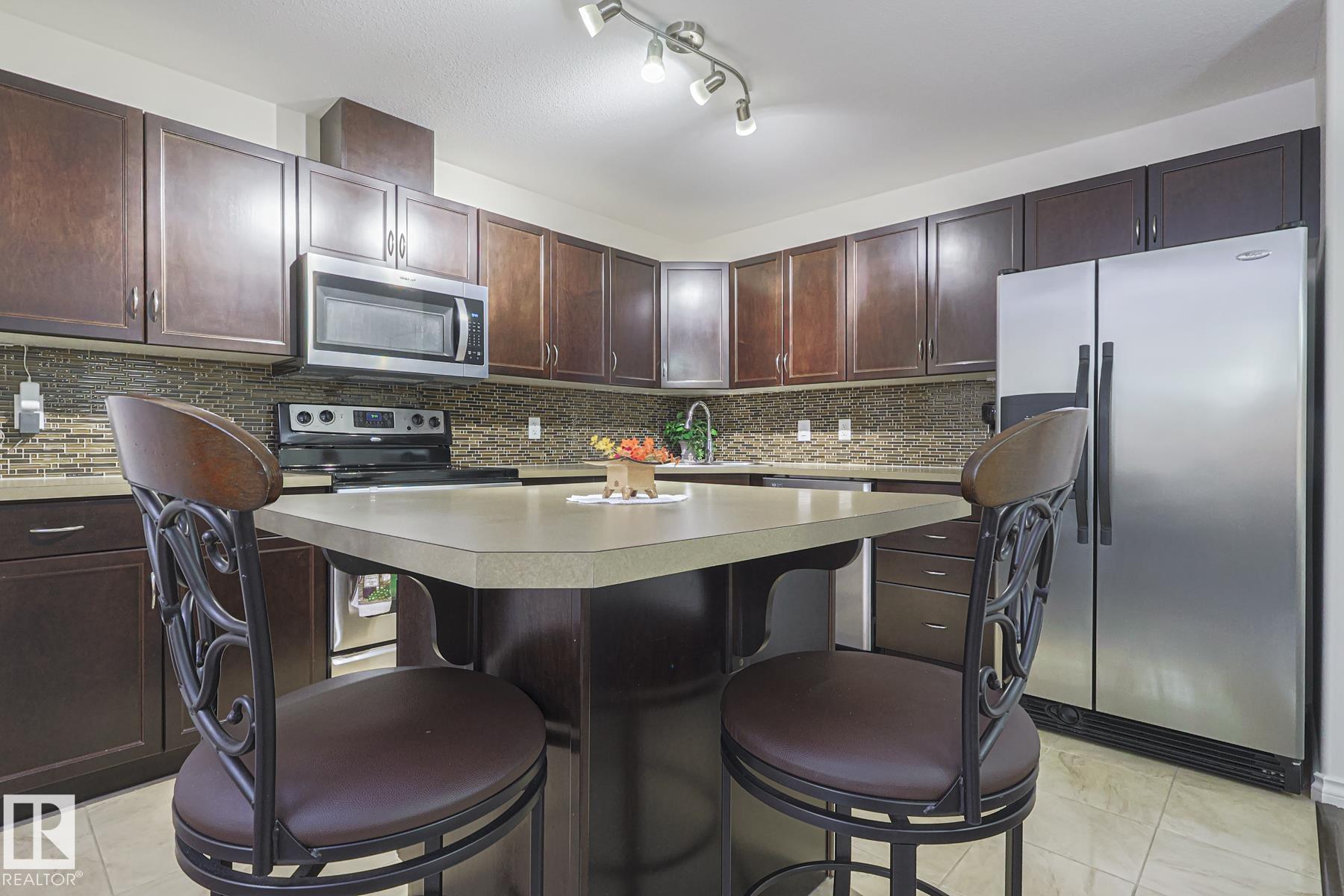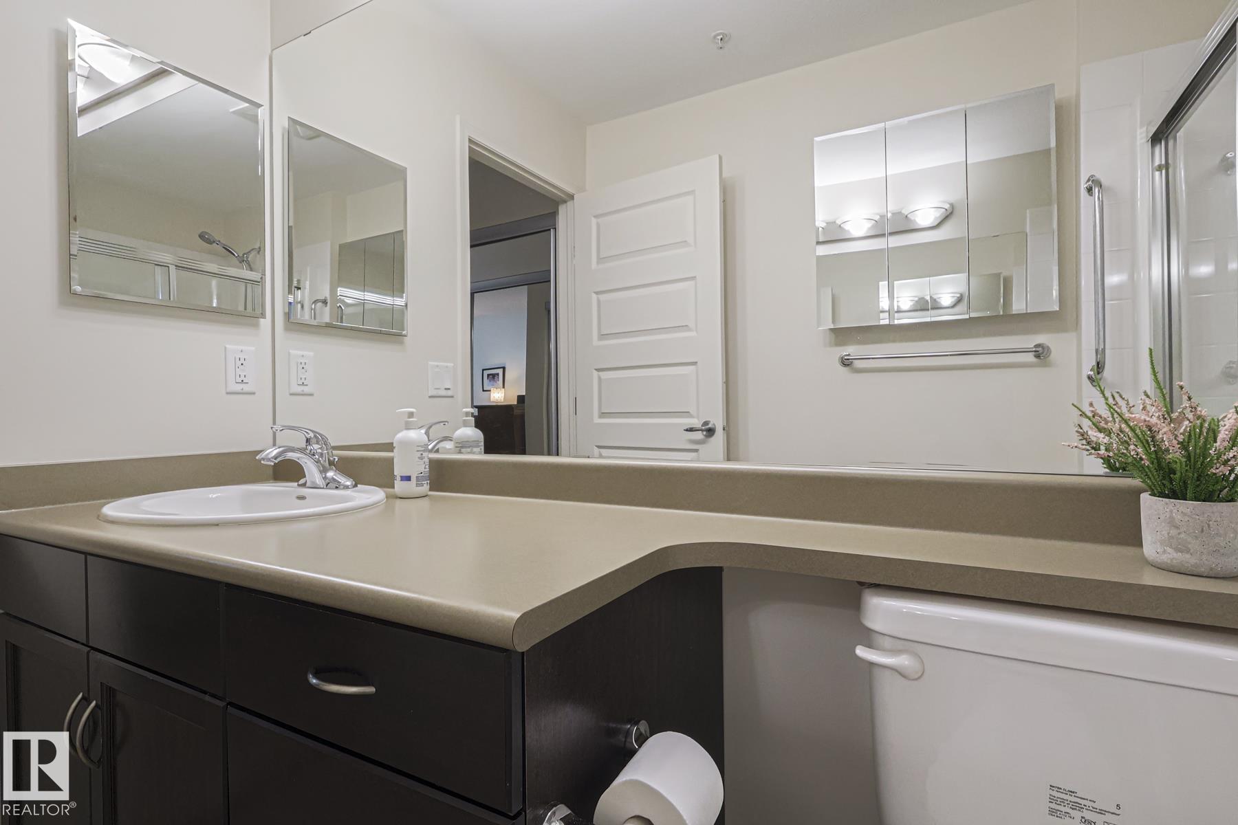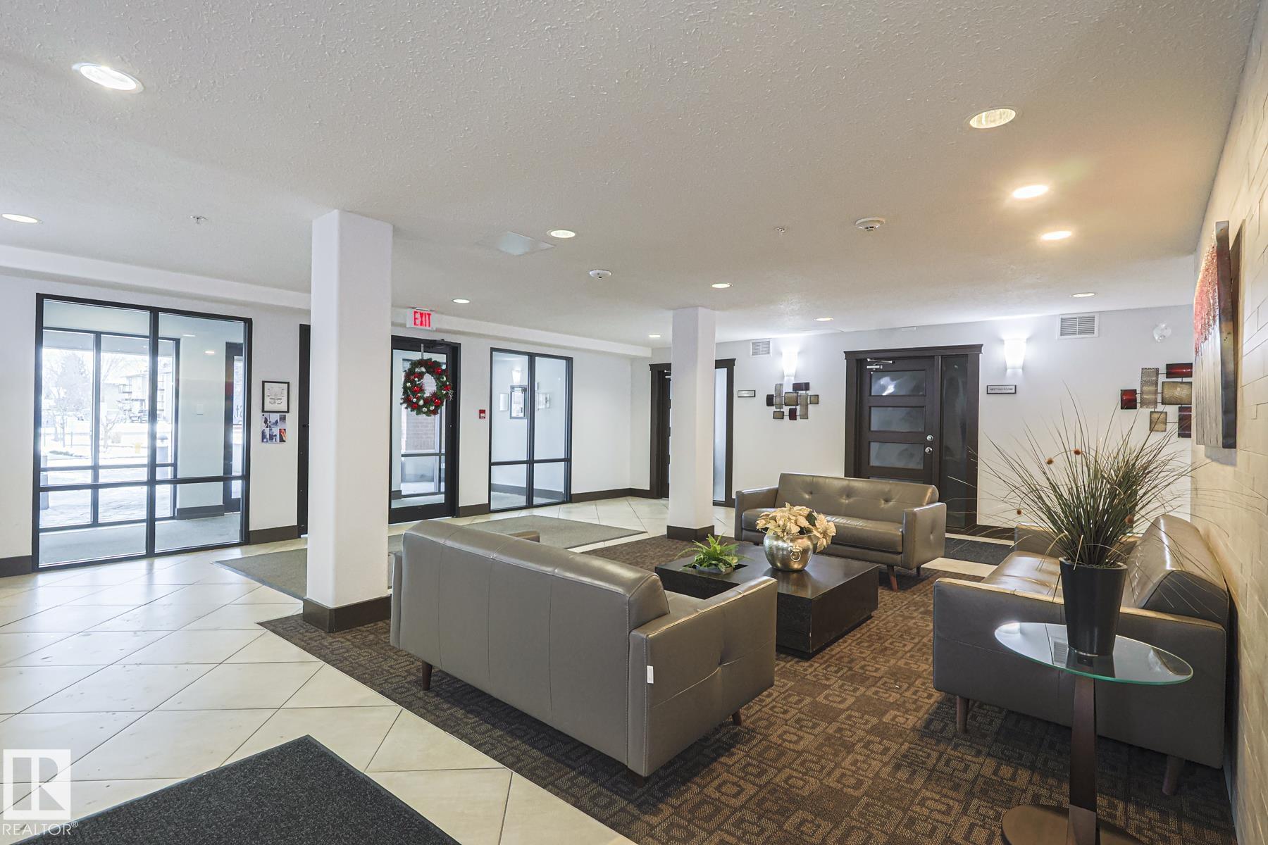 Upscale condo living at Urban Village on Whyte! One of the larger units at 1269 sq ft featuring 2-bedrooms plus a den, 2 full baths and 2 titled parking spots (one underground with storage cage and one above ground). This main-floor unit offers open-concept living w/ stylish kitchen, stainless steel appliances, and a large eating bar + dining area. Enjoy a bright living room with a cozy gas fireplace, vinyl plank & tile flooring throughout, in-suite laundry, central A/C, & generous storage. The primary suit...