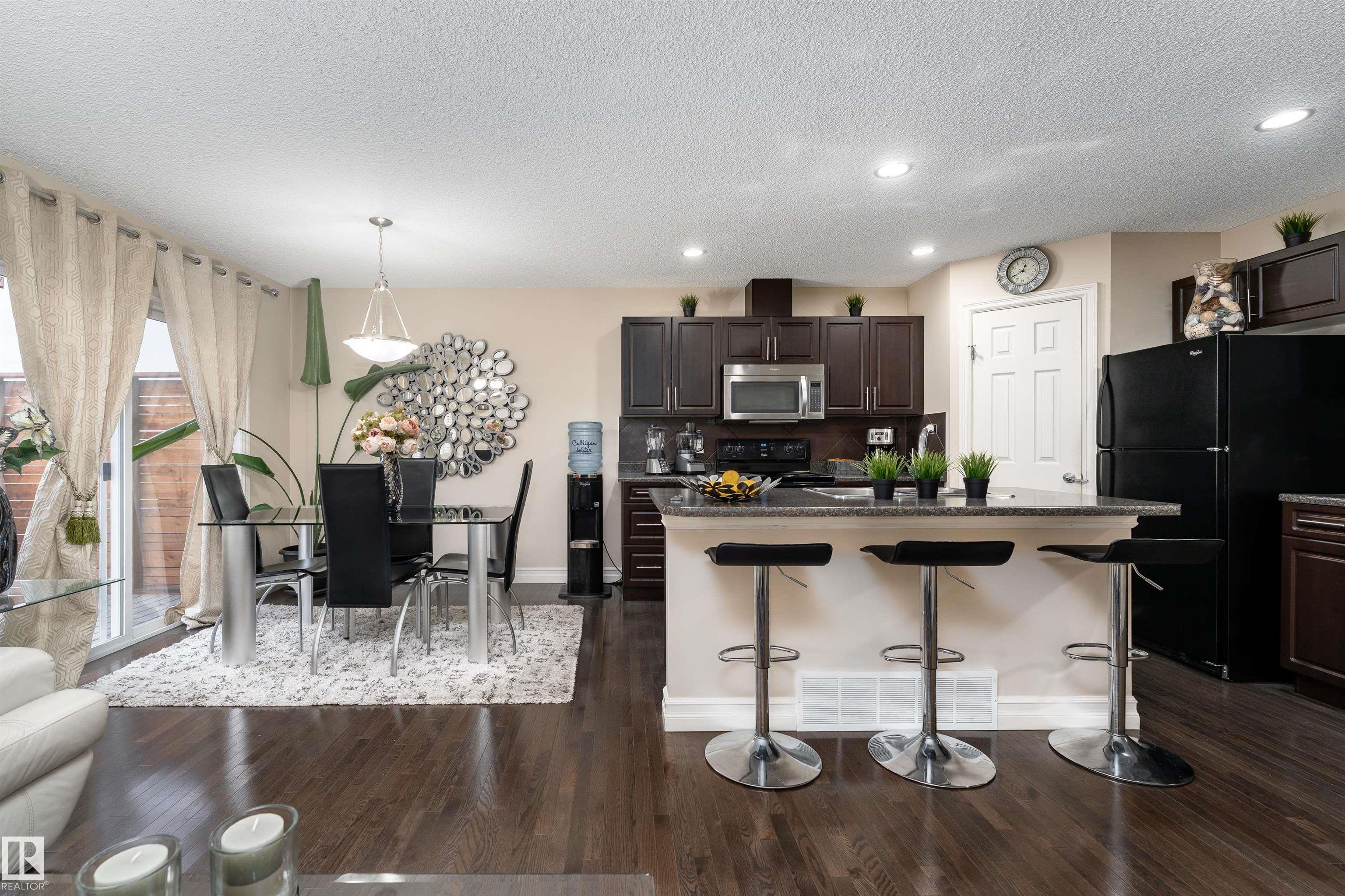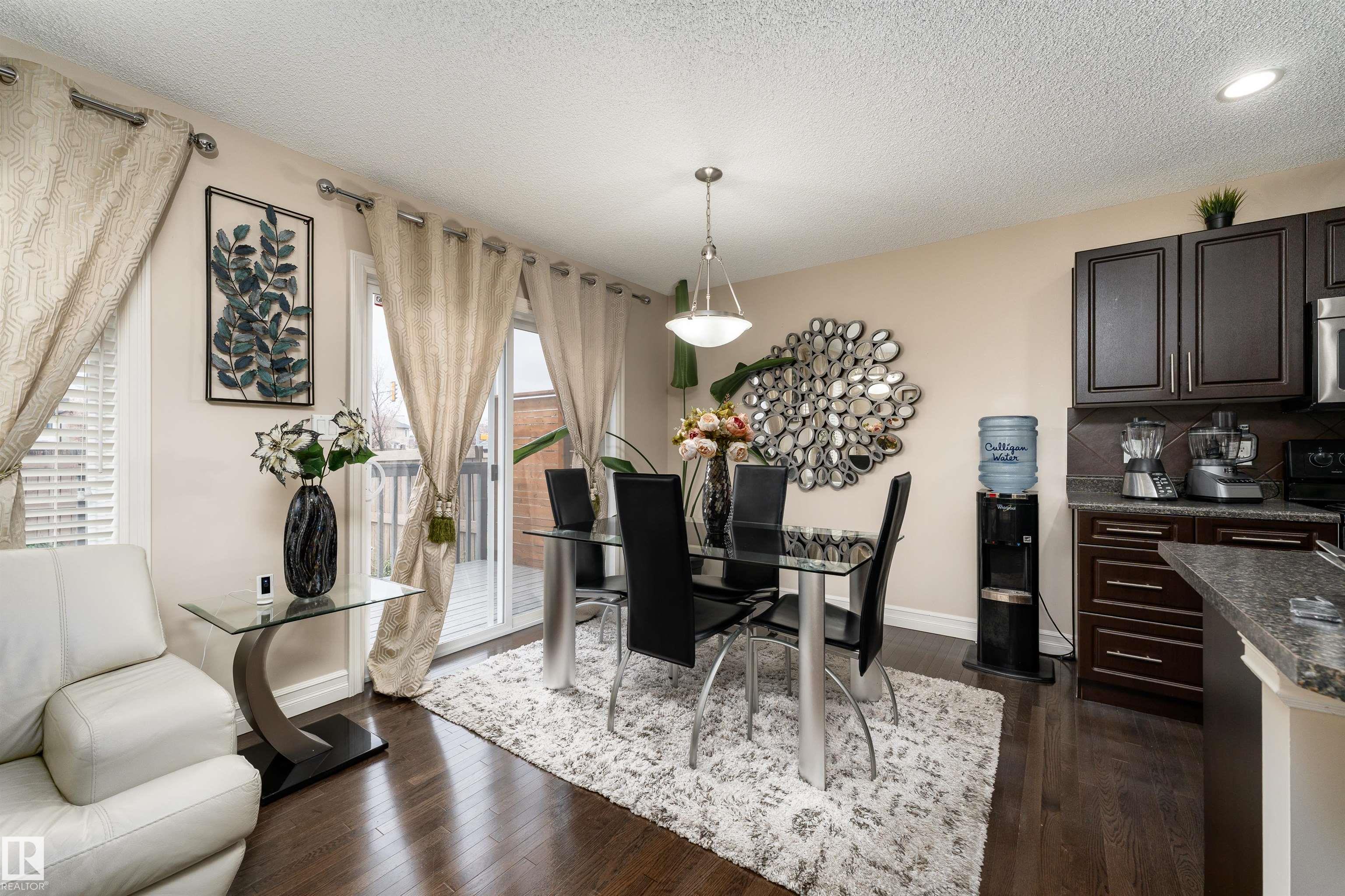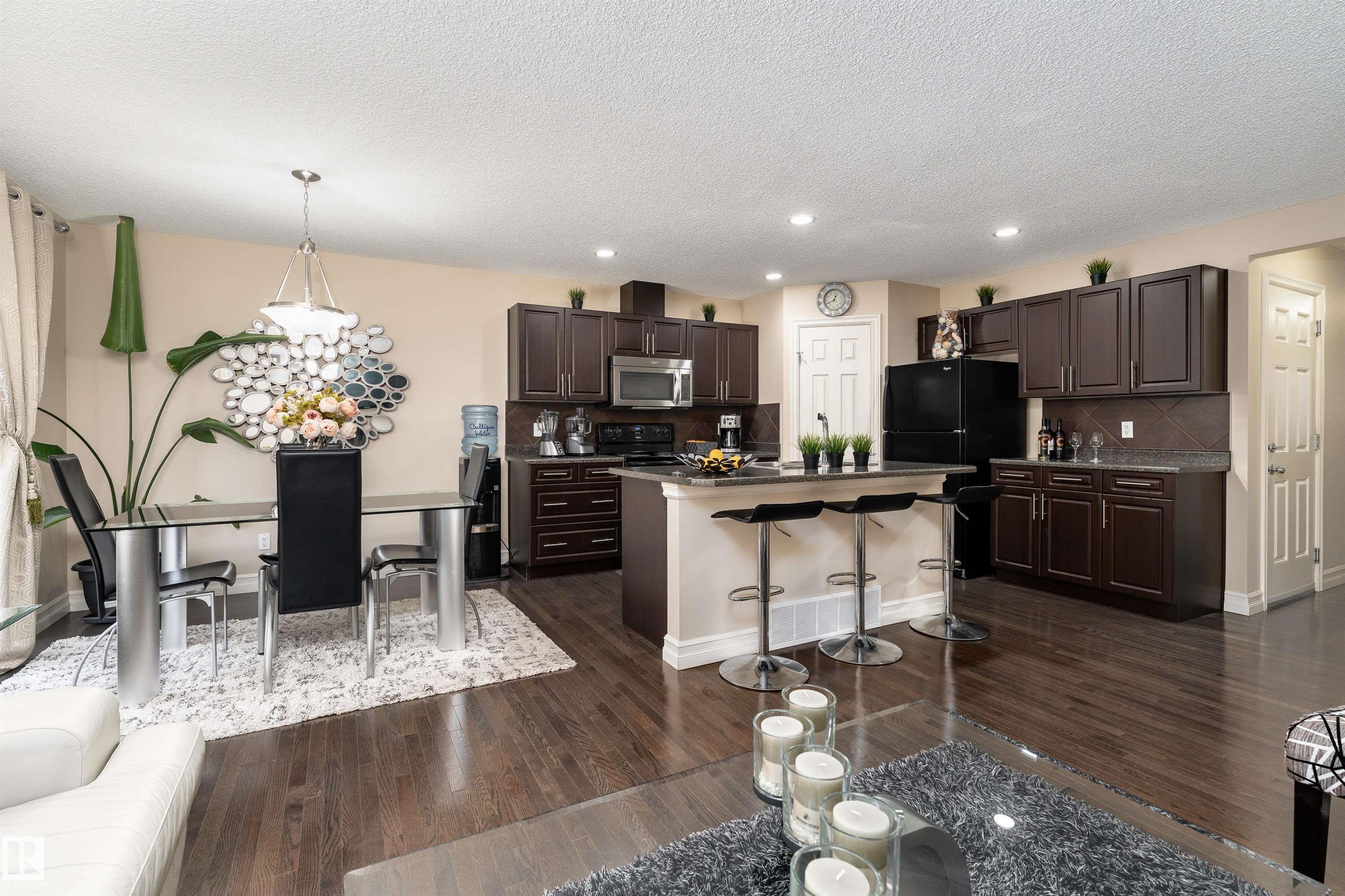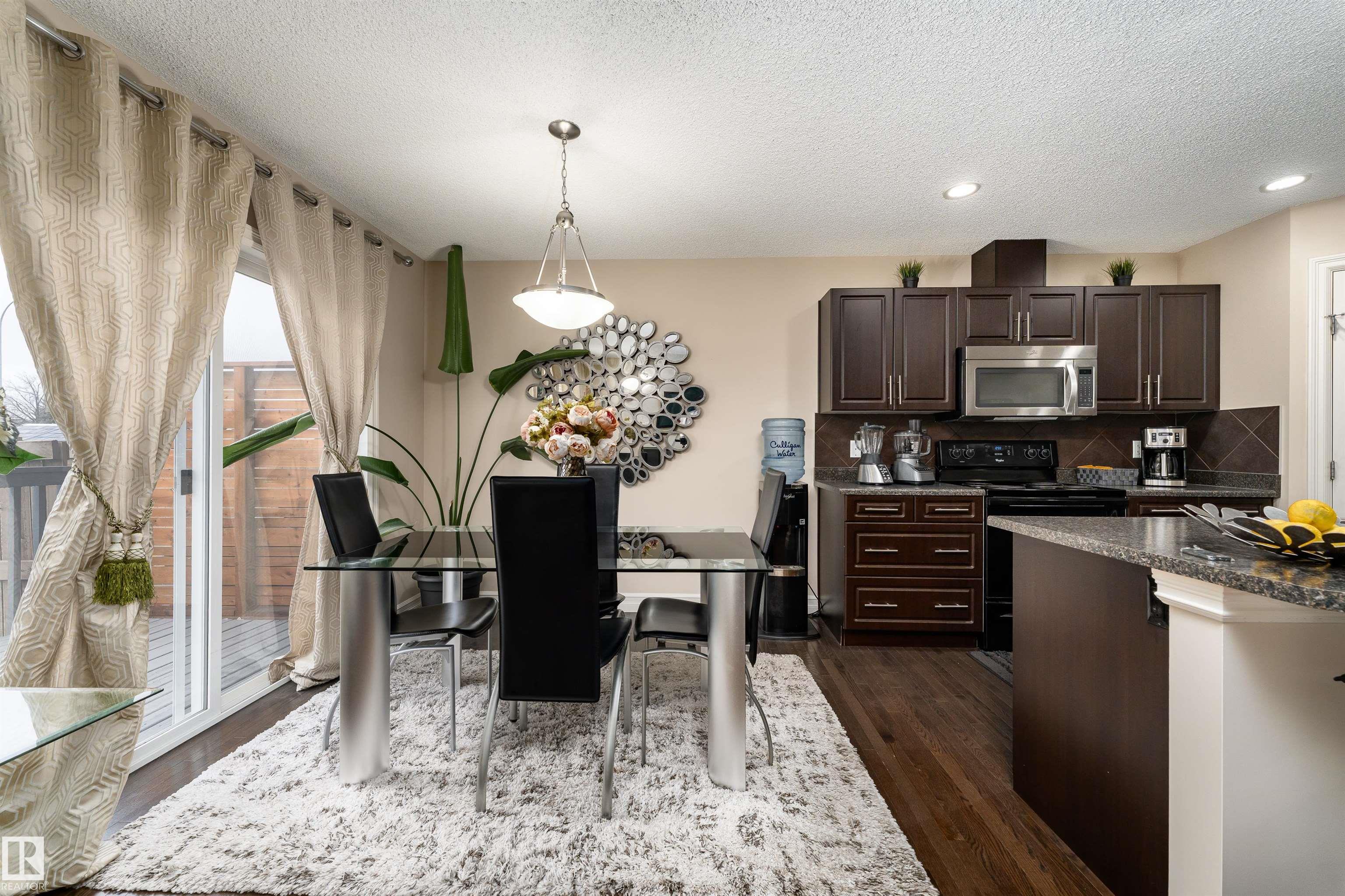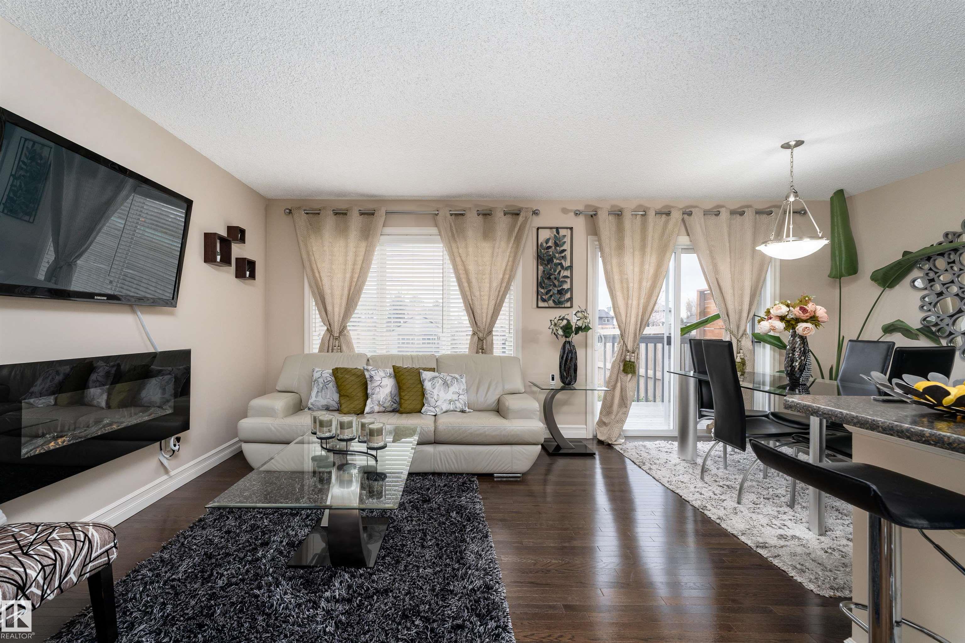 Discover the perfect blend of comfort and style in this 1,400 sq ft home in the community of Rapperswill. Step inside to a bright main floor with dark hardwood floors, large windows, and a cozy wall-mounted electric fireplace. The kitchen features dark cabinets and countertops that contrast beautifully with light walls, a large island with a sink, and a dining area with sliding doors leading to the backyard deck and fenced yard, perfect for family gatherings. A 2-piece bathroom and access to the single atta...