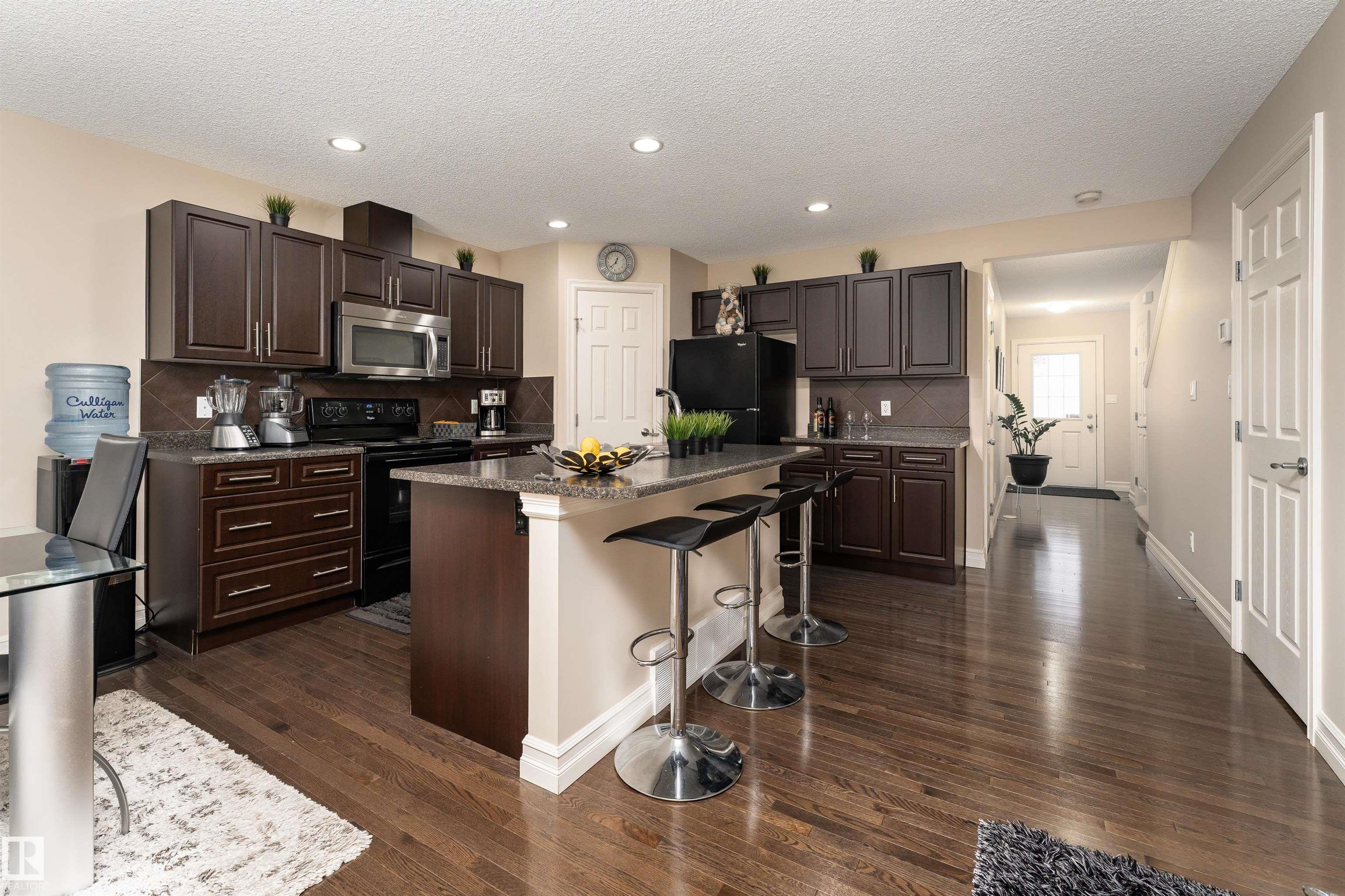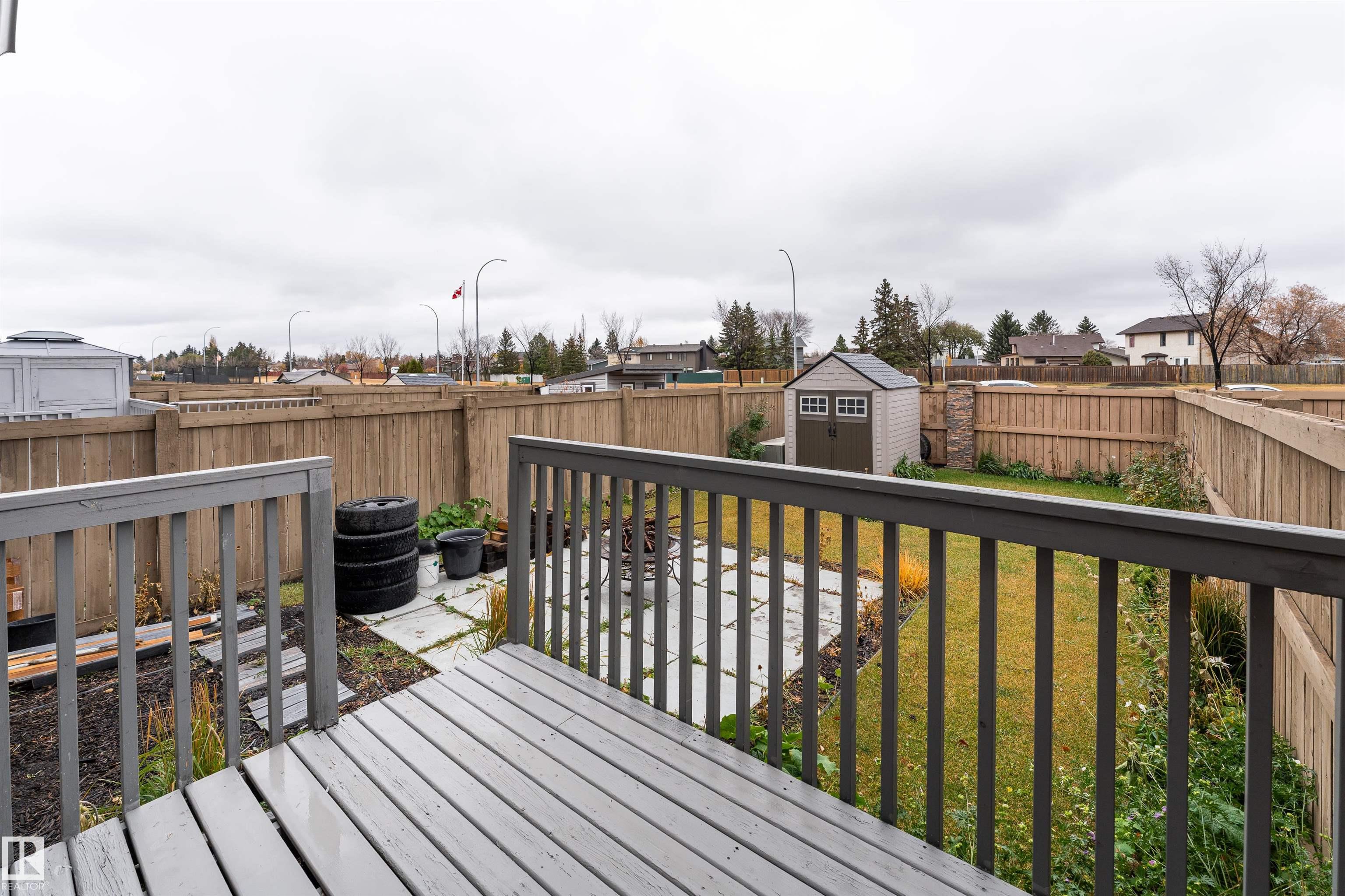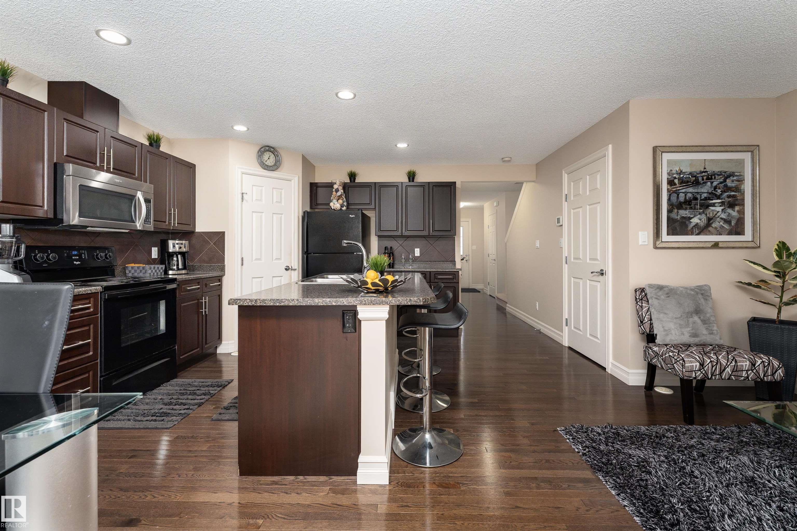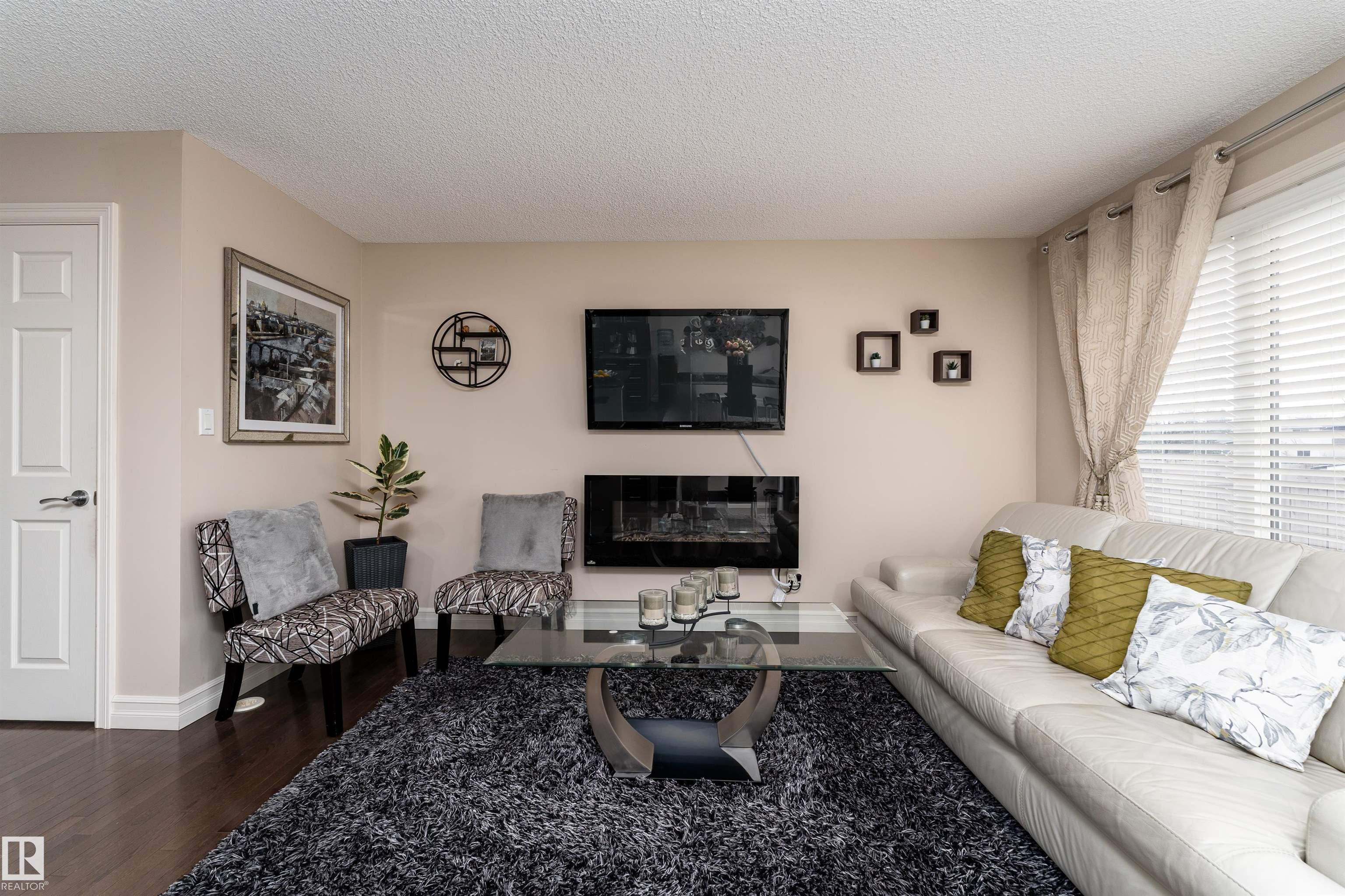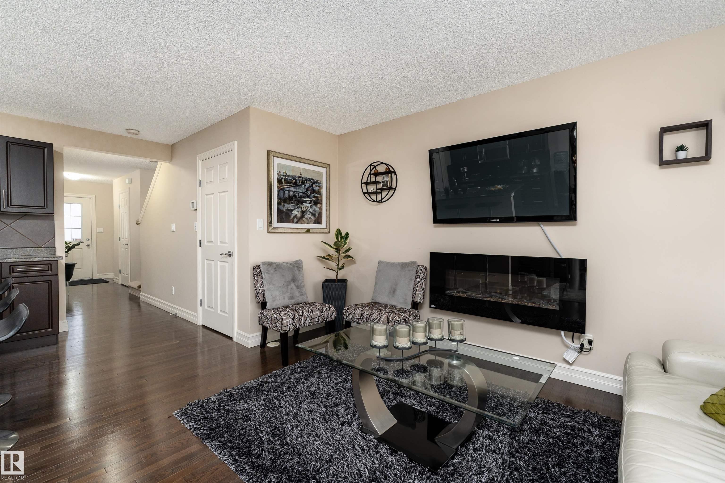 Discover the perfect blend of comfort and style in this 1,400 sq ft home in the community of Rapperswill. Step inside to a bright main floor with dark hardwood floors, large windows, and a cozy wall-mounted electric fireplace. The kitchen features dark cabinets and countertops that contrast beautifully with light walls, a large island with a sink, and a dining area with sliding doors leading to the backyard deck and fenced yard, perfect for family gatherings. A 2-piece bathroom and access to the single atta...