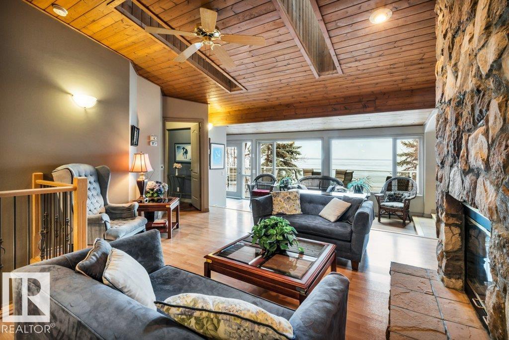 Discover the perfect blend of privacy, comfort, and lakeside living in this year-round walkout bungalow. Designed for both relaxation and connection, it features vaulted ceilings, warm wood accents, and a striking two-sided fireplace anchoring the open kitchen, dining, and living areas. Step onto the deck and take in serene lake views. The main floor offers a welcoming office near the entry, a spacious primary suite with walk-in closet and 5-pc ensuite, plus an additional bedroom for family or guests. Downs...