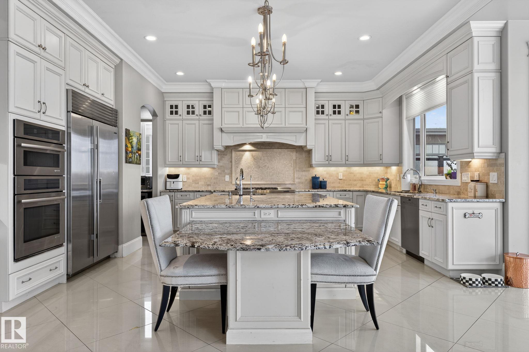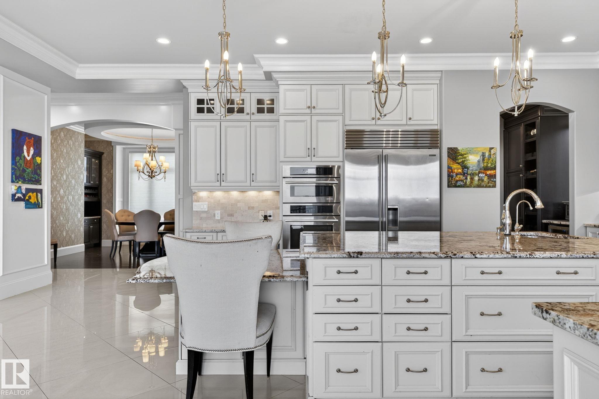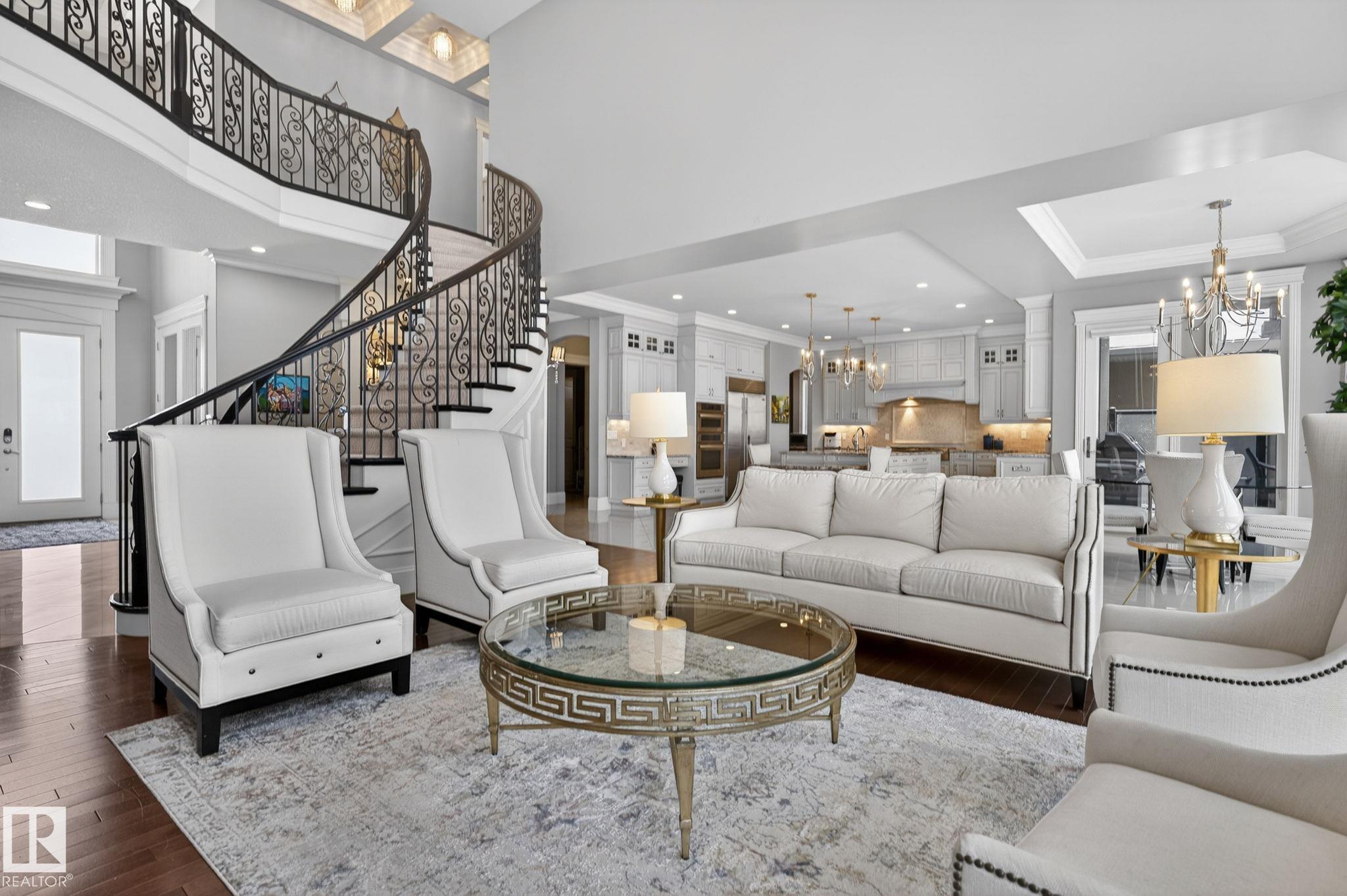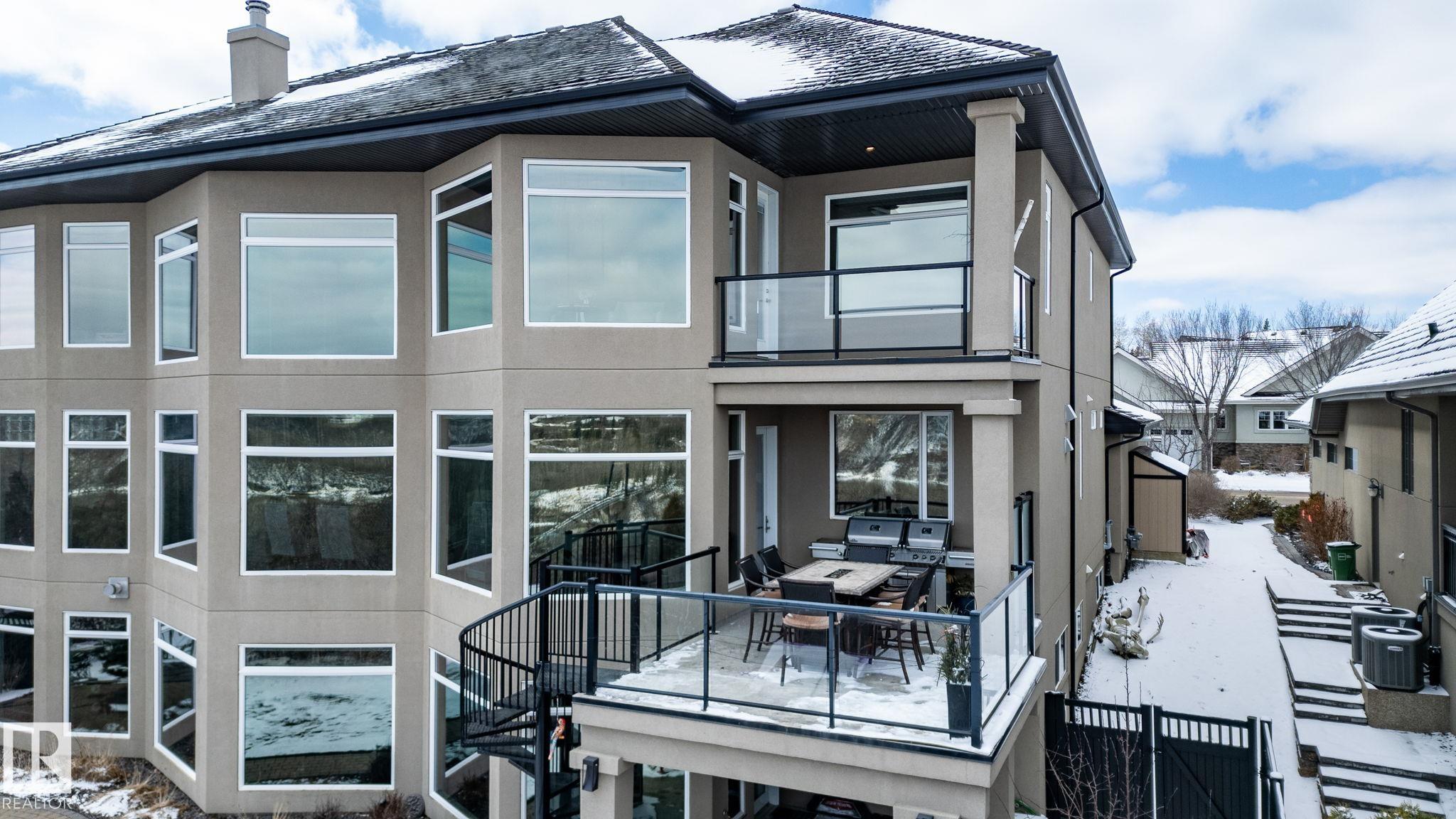 Showcasing the unprecedented views of the North Saskatchewan River & the City Skyline, this stunning 2 storey estate has over 7,500 sq.ft. of living space on 3 floors, and is located on a quiet cul-de-sac in exclusive Wolf Willow Ridge bordered by the River Valley, Wolf Willow Ravine and the Edmonton Golf & Country Club. The sun room & family room are adjacent to the great room boasting a 20' ceiling, floor to ceiling gas f/p, a wall of windows & is open to the gourmet kitchen w/ built-in S/S appliances, gr...
