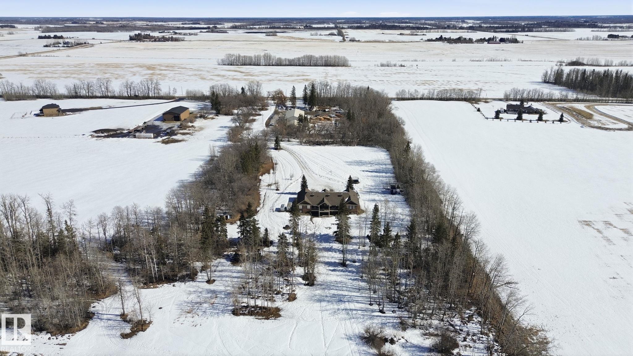 Picture perfect acreage living in this 3600 sq ft bungalow on 10 acres of land with 2 shops south of Stony Plain. Feel at home as you drive the private winding driveway to the huge front porch. Walk in to amazing views of natural through the beautiful west facing windows. Open floor plan with large living room, huge kitchen & perfect breakfast nook. Massive dining room for hosting family & friends! Master suite has it's own living room or quiet area. Bedroom itself is massive with tons of natural light. His...