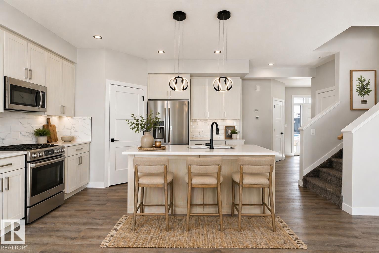 Step into a place that instantly feels like home—this beautifully designed 1,762 sq. ft. two-storey offers comfort, style, and a rare triple attached garage. A welcoming foyer greets you with a built-in bench and front closet, leading into a thoughtfully laid-out main floor featuring a convenient powder room, functional mudroom with custom cubbies, and a walk-through pantry to the heart of the home. The kitchen shines with ample counter space, granite-style subway backsplash, and a large island overlooking ...